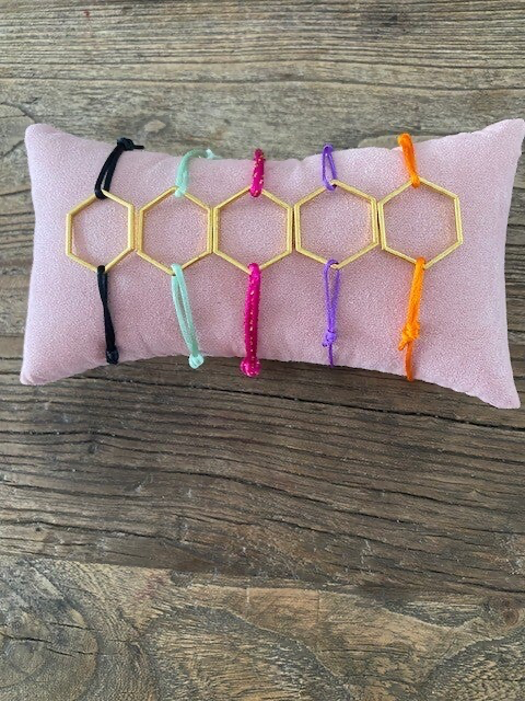 Het bandje is verstelbaar door middel van een schuifknoop.